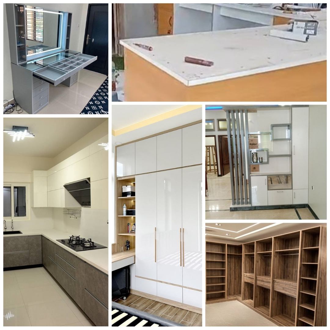 Setiap proyek dikerjakan melalui proses yang terstruktur dan profesional. Dimulai dari konsultasi kebutuhan, pemilihan desain, hingga pengukuran presisi di lokasi. Material inti seperti plywood dipilih sesuai spesifikasi proyek, lalu dipadukan dengan HPL berkualitas menggunakan teknik pengeleman yang kuat dan rapi.