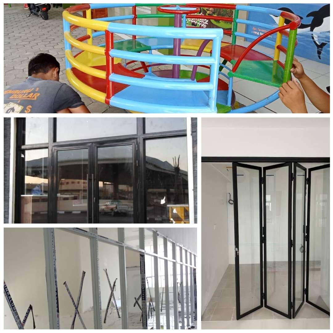 Pintu Kaca dan Aluminium: Rumah, toko, ruko, termasuk pintu lipat, geser, dorong, frameless, dan folding door.