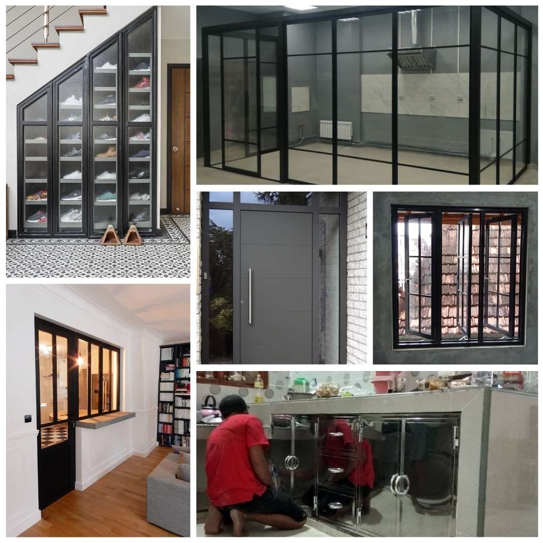 Pelanggan bebas menentukan ukuran, model, ketebalan bahan, warna, dan jenis kaca. Misalnya, Anda bisa memilih pintu geser kaca dengan frame hitam doff, kusen aluminium warna silver elegan, atau partisi aluminium dengan finishing natural anodize.