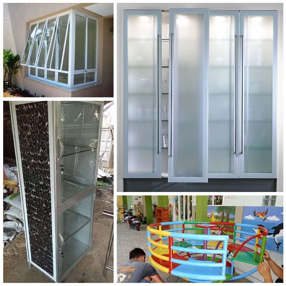 Produk Aluminium: pintu aluminium, pintu panel ACP, pintu aluminium spandril, pintu kamar mandi aluminium, pintu lipat aluminium, pintu ayun, pintu geser lipat, jendela aluminium, partisi aluminium, kusen aluminium, jalusi, dinding ACP, kitchen set ACP, partisi ACP, kolom ACP, dan berbagai varian lainnya.