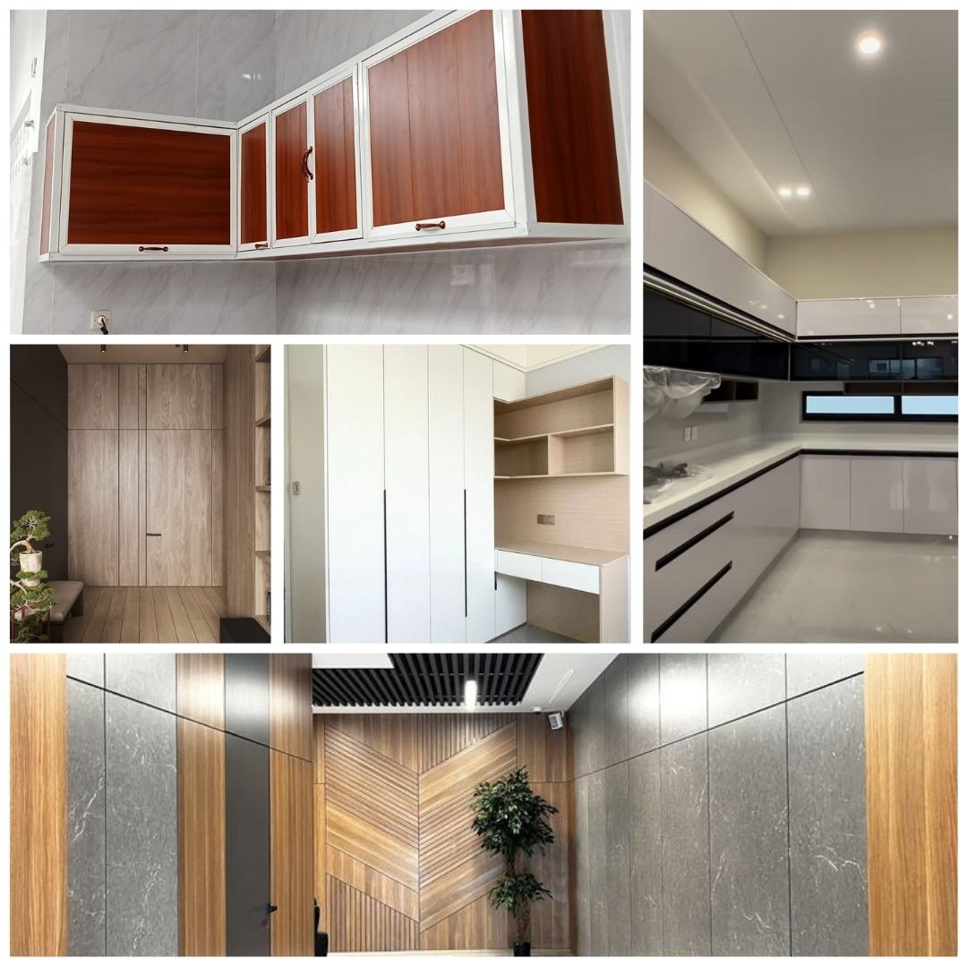 Aplikasi HPL Invinium menjawab kebutuhan tersebut karena HPL memiliki permukaan padat, tidak menyerap air, dan tahan terhadap panas serta goresan. Hal ini menjadikannya sangat ideal untuk kitchen set, cabinet dapur, wardrobe, backdrop TV, partisi, dan berbagai furniture interior lainnya. Dari sisi estetika, HPL menawarkan banyak pilihan motif dan warna yang mendukung desain modern minimalis hingga tampilan mewah kontemporer.