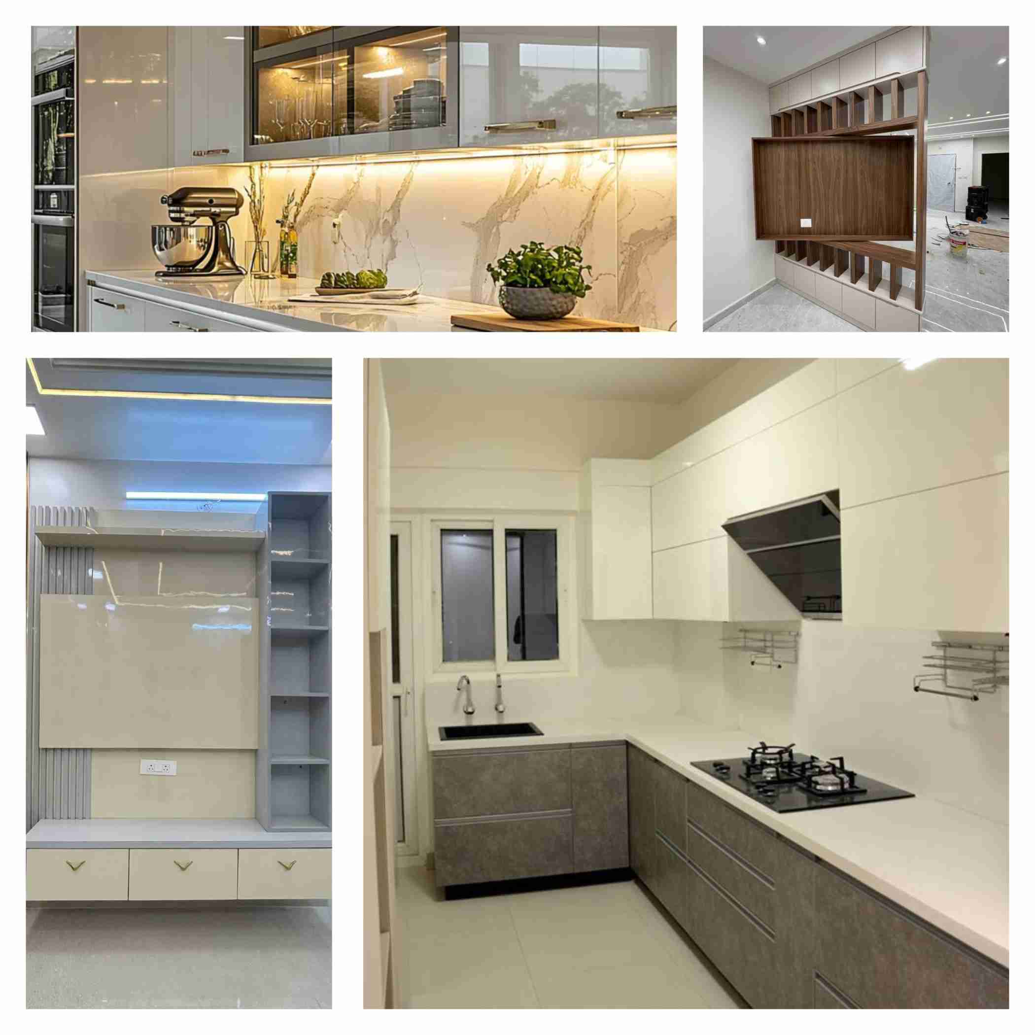 Finishing Interior Custom Termasuk dinding, kabinet, dan counter top.