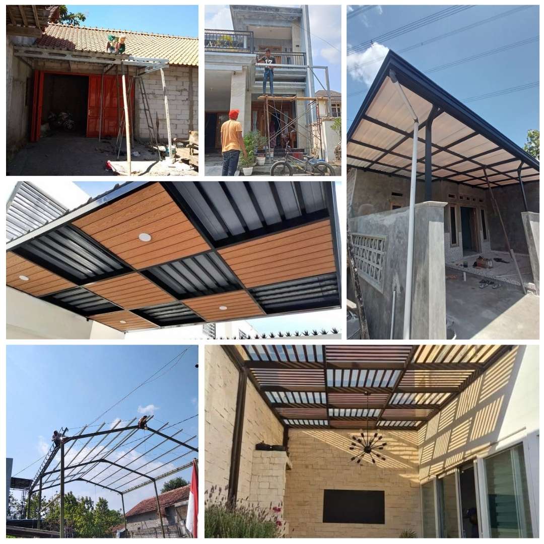Pertama, proses dimulai dengan desain menggunakan software khusus dan perhitungan beban struktural secara detail. Setiap kanopi dibuat berdasarkan perhitungan teknis yang menyesuaikan ukuran lahan, tingkat beban angin, curah hujan, hingga model fasad rumah. Perhitungan beban sangat penting untuk kestabilan rangka agar mampu bertahan bertahun-tahun di kondisi cuaca Semarang.
