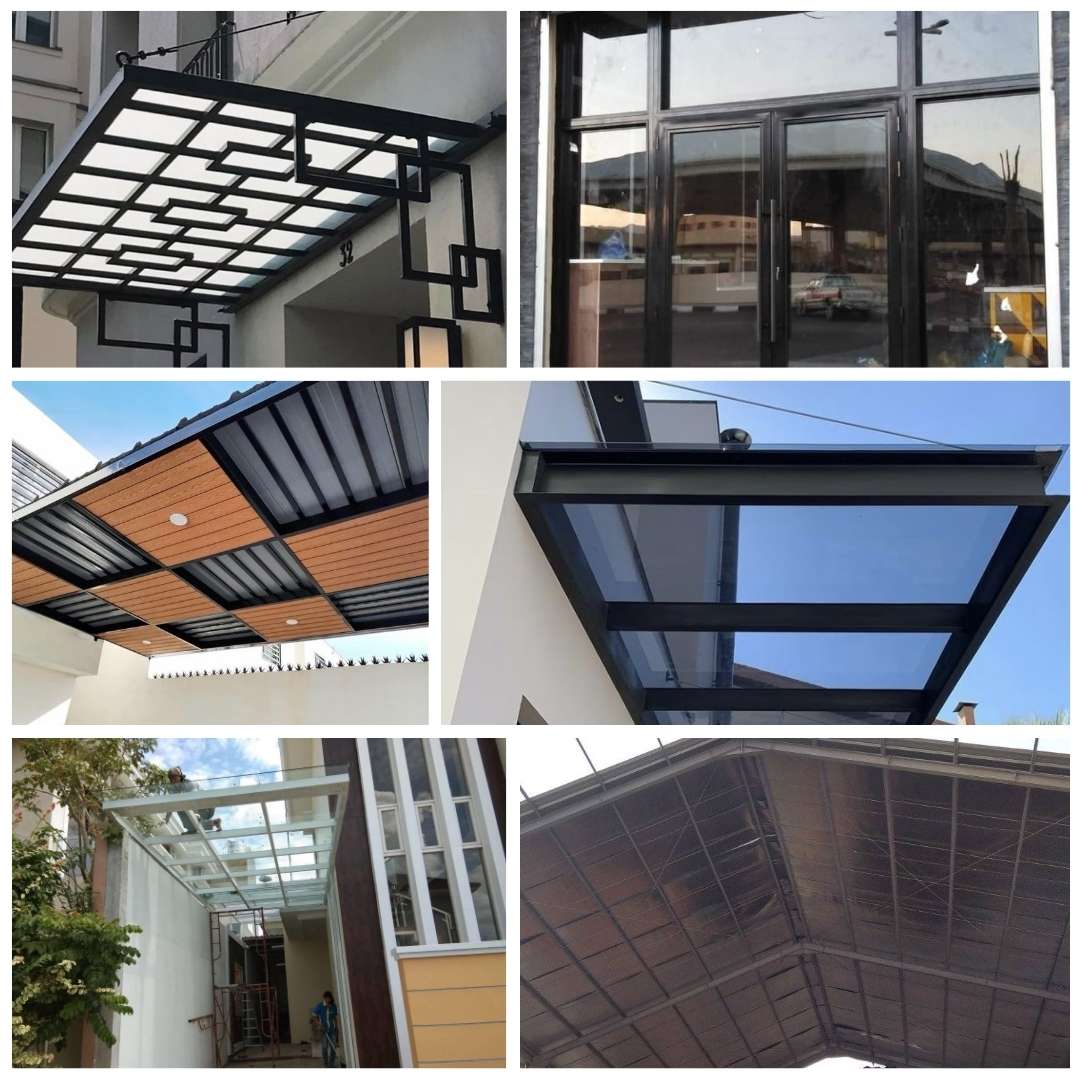 Memberikan kesan mewah dan modern. Kanopi kaca cocok untuk area taman atau bangunan komersial seperti kafe dan restoran. Dengan ketebalan kaca yang tepat, material ini tetap aman dan kuat meskipun terlihat transparan. -