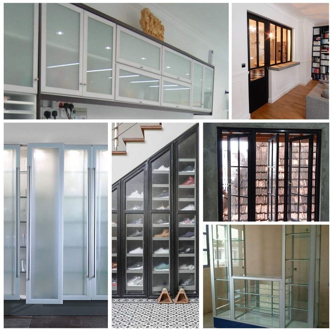 Untuk bangunan kantor, partisi kaca buram atau kaca tempered kombinasi aluminium menawarkan tampilan profesional sekaligus tetap menjaga privasi ruang kerja. Banyak pemilik toko memilih pintu geser kaca karena selain tampilannya modern, ruang bukaannya lebih lebar, praktis, dan memudahkan keluar masuk pelanggan.